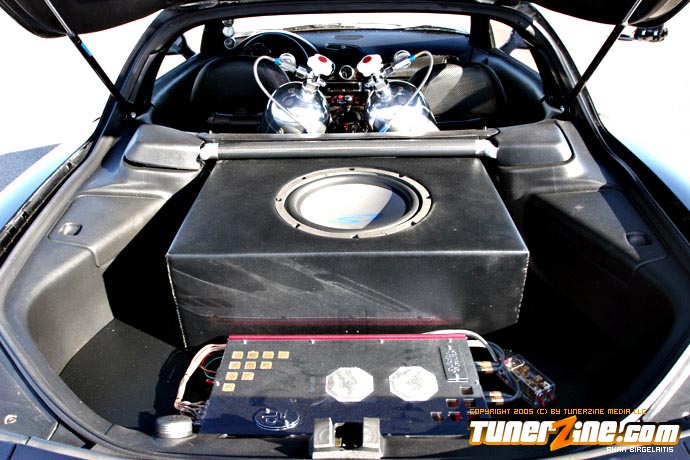 Helping give it the insane yet clean look is a JDM MazdaSpeed GTC front bumper. Mixing and matching the best of all worlds, Tony installed a pair of JDM Knightsports side skirts and had them molded onto the chassis. The rear bumper has received new stylish lines with the addition of JDM Feels rear bumper skirts. Up in the front, a JDM Knightsports carbon fiber vented hood takes the place of the stock one, while East Bear’s fixed headlight kit is found in the headlight housing. The stock taillights were swapped out for the more popular JDM ’99-spec round tails. On the trunk is a Racing Beat Type-II spoiler sporting a stylish carbon fiber center piece.