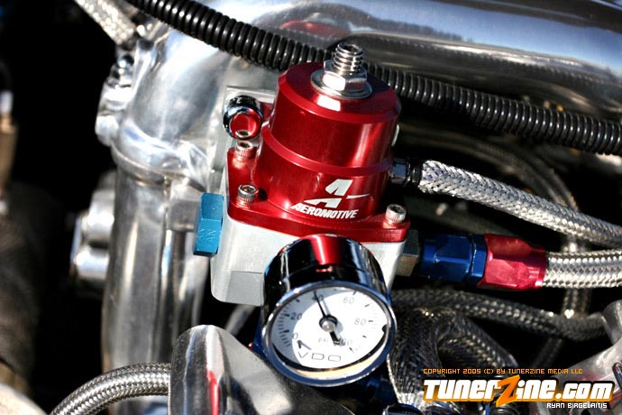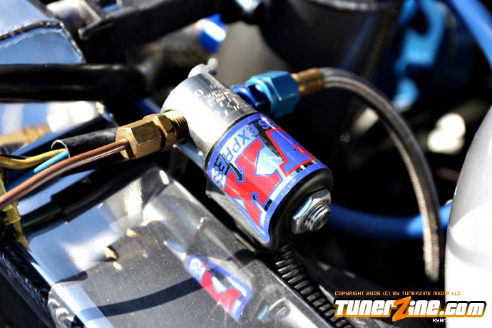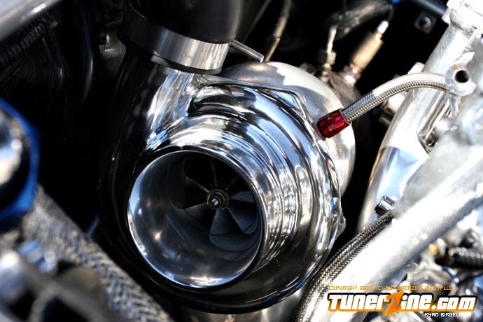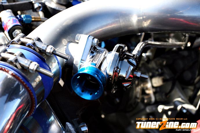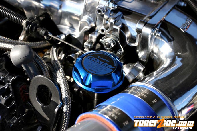 Enough with artificial bits and lip-syncing teenie-boppers, the real fun starts when the key’s turned and the rotary’s fired up. The Marvel Speed race-ported 13B two-rotor engine comes to life as the match-ported upper and lower intake manifolds thirst for force-induced air. The Garrett T04 single turbo upgrade easily satiates its desires as a stainless steel divided exhaust manifold spits all the fumes through a stainless steel downpipe and out an APEXi GT Spec exhaust system. An HKS intake starts the entire process, as plenty of fuel is sprayed into the motor thanks to 850cc primary injectors and 1680cc secondary injectors. All located in an upgraded secondary fuel rail, a KG Parts fuel kit helps ensure this motor gets plenty of fuel. Adjustability comes from the ever-popular Aeromotive fuel pressure regulator. On the ignition side, a Jacobs FC1000 ignition pack along with HKS plugs and Magnecor 10mm spark plug wires brings the entire package to life. Several GReddy amenities decorate the engine bay: a radiator cap and oil cap, along with the glistening Type-RS blow-off valve in the sun. All the force-induced air is cooled off by a large APEXi GT Spec intercooler system. Thanks to a GM three-bar MAP sensor, the rotary 13B can be fine-tuned with the aid of an APEXi Power FC management unit. A GReddy Profec B Spec 2 handles boost duty while an HKS turbo timer ensures everything lasts its lifetime. A Koyo aluminum radiator shines while offering great cooling capabilities. Lastly, a Pettit Racing aluminum AST coolant tank was installed as a safety precaution.