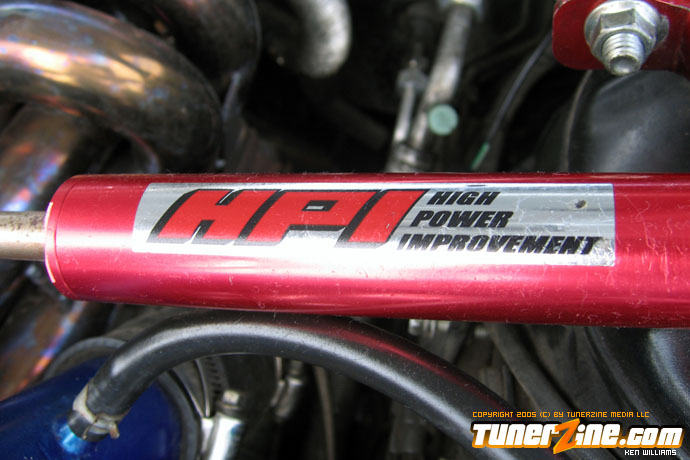 On the intake side, a Trust air cleaner and Z32 air flow meter, coupled with a Hey Man! Products V-mount intercooler, ensure that a constant supply of cool air is available. From there, a pair of HKS 256 camshafts replace the stock bumpsticks, and exhaust gases are handled via a Hey Man! Products stainless header, outlet, down pipe and exhaust system