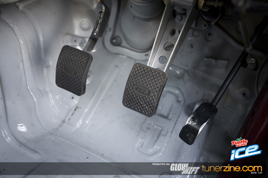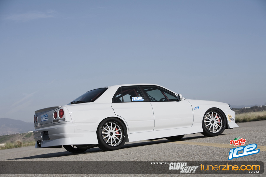Originally automatic, the Tjin Edition / Turtle Wax ICE team has converted this Skyline sedan into a RB26 6-speed transmission fully equipped with an ACT clutch.