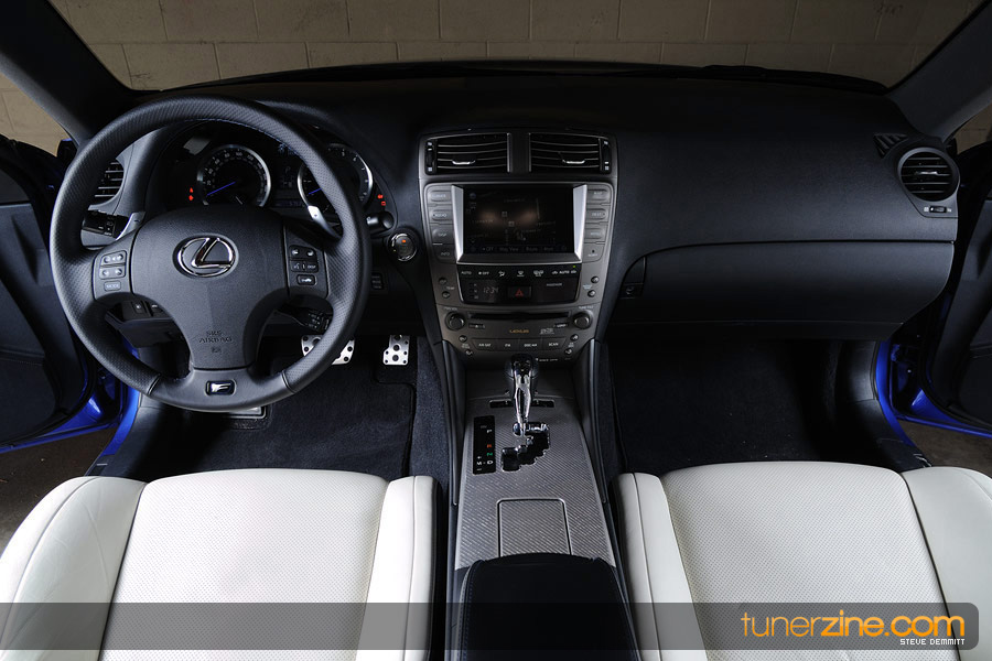 Any automotive aficionado will quickly realize that we don’t have to go digging into the suspension and the brakes for you to know the IS-F is well balanced in that department as well. Stiffer springs all around as well as beefy sway bars and Brembo drilled rotors easily bring the stock 19-inch wheels to a halt. But needless to say we would be inclined to swap out the wheels for something more attractive taking advantage of the IS-F’s slightly wider body. A slightly lowered stance wouldn’t hurt the IS-F either, but we all know there’s a sacrifice in performance when it comes to that.