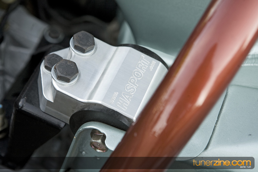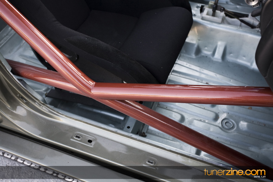 Once all the fabrication work was done, the vehicle was towed off for its paint and body. Jason opted to paint the exterior Desert Sage Metallic, which at the time was the same color as his daily driver, a Lexus IS250. It was a fairly unique color, a greenish shade offset with a gold pearl finish. The interior and the engine bay was painted a minty blue hue while the cage was completely contrasted with a reddish/orange pearl. Once the paint work was completed it was off to Plan B Motorsports where the K-Series awaited along with suspension, brakes, wheel and tires upgrades.