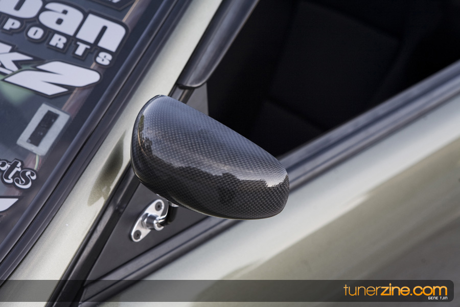 The car made its way back to Unique Fabrication for the finishing touches. A full Chargespeed body kit for the Integra sedan was installed along with JDM DB8 visors and taillights. C-West carbon fiber mirrors with custom mounts were bolted onto the side of the vehicle. To pop the doors at the show, Magic Touch door poppers were installed on the front and rear windshield – giving quick access to the cabin with a slight wave of the hand on the sensors. Finishing up the interior, Unique Fabrication made seat mounts for the Chargespeed carbon fiber seats. A Nardi steering wheel on a MOMO hub and a Skunk2 shift knob were finishing touches.