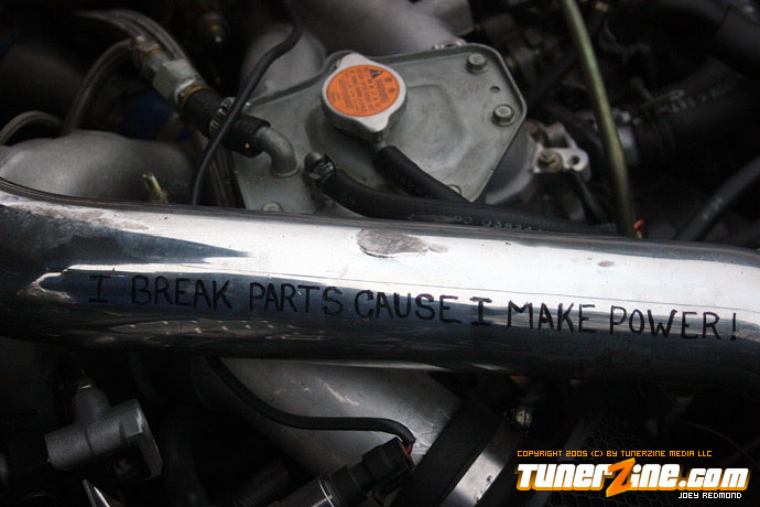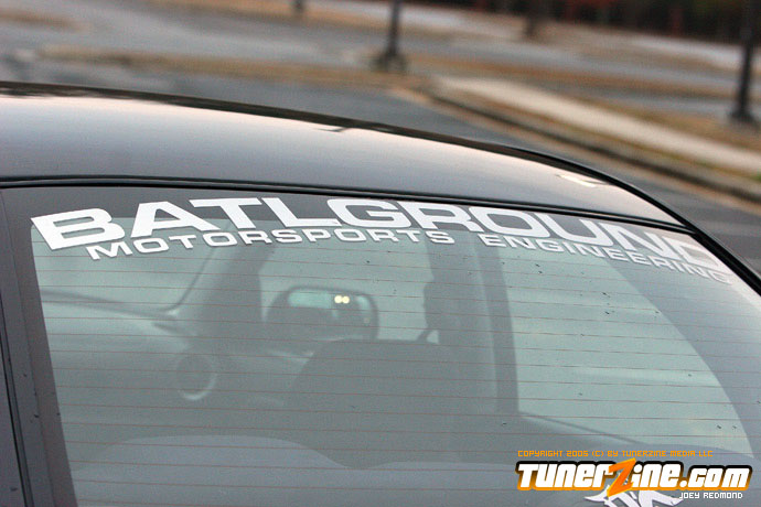 Batlground’s GT30R turbo kit obviously consists of a GT30R turbo, but the rest of their kit was custom pieced together to obtain the performance they seek. A Perrin front mount intercooler kit along with a Perrin blow off valve are just some of the necessities needed to ensure that each time the car engages boost every other component is already anticipating it. An AEM EMS is used to tune the additional fuel supplied by a Walbro 255lph fuel pump, custom 750cc injectors and the Perrin fuel rails. Keeping things stealth is a Borla hush exhaust system. Controlling boost is an APEXi AVC-R unit and ensuring this car lives the life it needs to, a HKS turbo timer count the minutes away cooling down all the circulating oil.