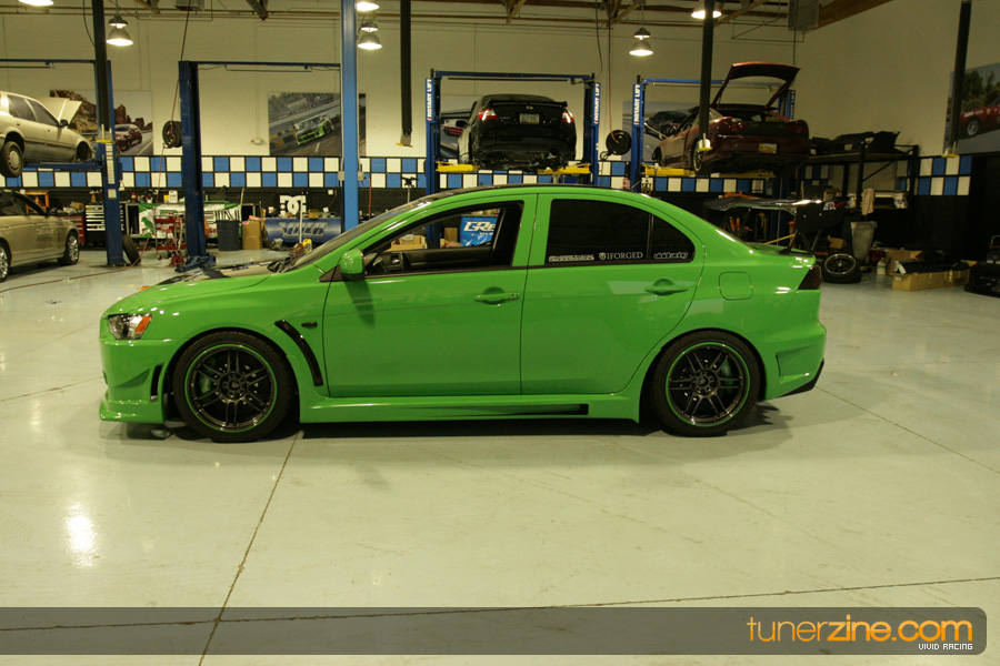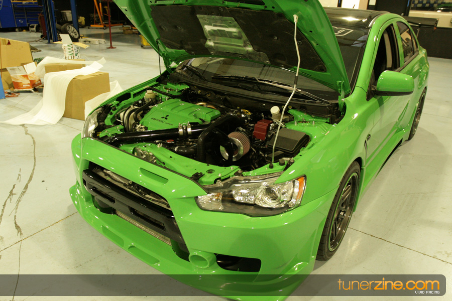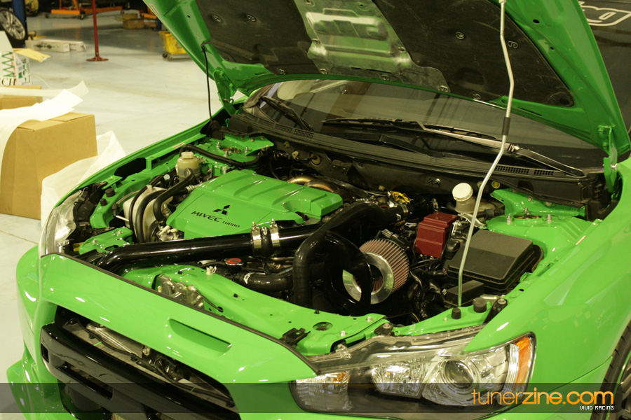 Now we here at Tunerzine.com are no strangers to Vivid Racing and their project vehicles. Running one of the most finely established companies in the industry and helping revolutionize the market, Vivid Racing has always been a valuable affiliate to us. We were extremely excited to get these photos of their EVO X project to present to our readers. We also would like to take the time in taking so long in putting up this feature. Vivid Racing had actually submitted these exclusive photos to us prior to the car’s debut at SEMA. We’ve unfortunately been extremely busy with some new and exciting features for our readers and we hope to break ground with it soon. So for those that are reading this, that’s the scoop on us… but now back to the feature car at hand!
