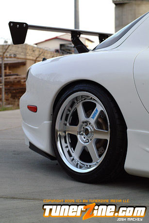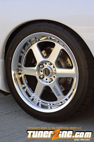 Finishing off the entire package is the suspension, brakes and most importantly the wheels and tires. Wheel and tires arguably make or break the design of a custom car, and this RX-7 went exactly down the right path. Like all its other modifications, high quality and hard to find was the name of the game – Volk Racing diamond cut GT-P’s are sitting on this chassis with 18×8 in the front and 18×10 in the rear. 225/40/18 Toyo Proxes RA-1 tires wrap the front pair and 275/35/18 wrap the rear. The entire 7 is brought to the ground with a set of TEIN HA coilovers. Further reinforcing the chassis is a set of Cusco front and rear strut tower bars. Stillen cross-drilled rotors replaced the old pieces as Metal Matrix Kevlar brake pads help ensure this RX-7 stops when asked to.