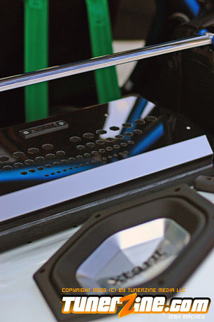 Electronics are a galore in this RX-7 as well. Aside from the custom white interior and Sparco Speed racing seats, a duo of GReddy 52mm gauges rest on the pillar. With boost and EGT explained to the driver’s left, a Blitz dual solenoid boost controller and Blitz FATT turbo timer lie on top of the steering column. Easy access to bump up the boost indeed, and with the GReddy boost cut controller installed along with the Pettit Racing ECU, this RX-7 is ready to strike up a conversation with anything. Perusing around the rest of the interior however, a Cusco 5 point roll cage matches the Veilside steering wheel. Contrasting the blue and the white are bright green Takata harnesses and a Veilside shift knob. In car electronics are almost a given for any feature car and this RX-7 kept it simple. In the center console is a Panasonic MP3 head unit and an Xtant 603 amplifier helps power the beautiful sounding Focal 130CA speakers. In the trunk are two 10″ Xtant subwoofers to provide some bass outside the exhaust note.