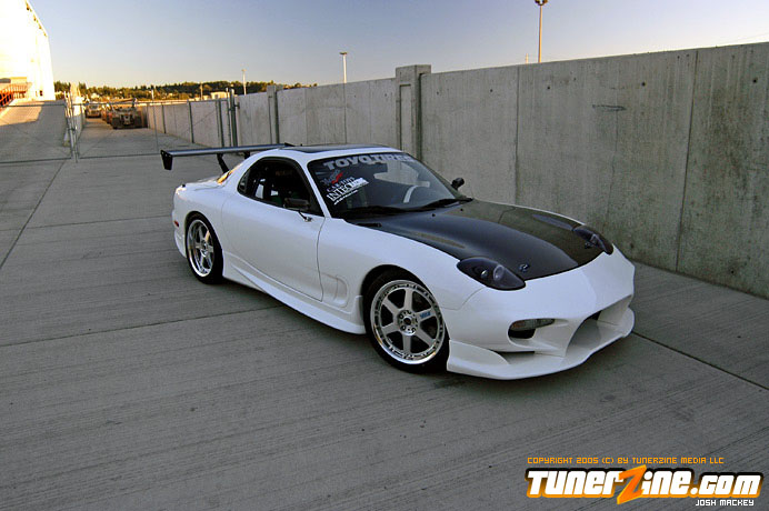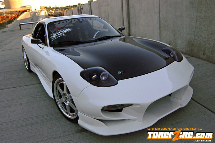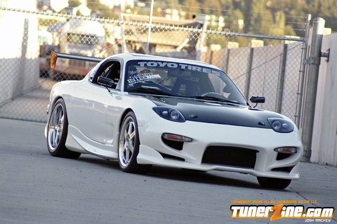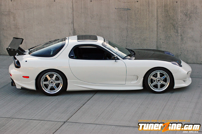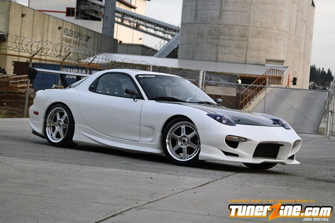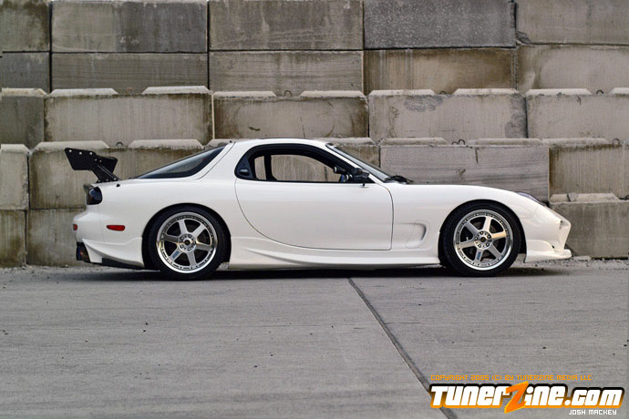 There are very few cars out there that the vast majority of enthusiasts would universally enjoy in terms of styling and performance. Representing the rotary engine setups, the RX-7 were a strong breed of cars when they rolled off the assembly line back in the early to mid 90’s. A decade later, there are less and less of these prowling the streets, but those that remain are pleasing to the eye. Some of these that are still out on the road have been restored like none other, carrying traits we all wish we could own. This fresh white RX-7 has a shade of blue pearl thrown into the paint, throwing a twist into the mix. The fun never stops there though, as the 13B-REW motor has received plenty of love from the aftermarket.