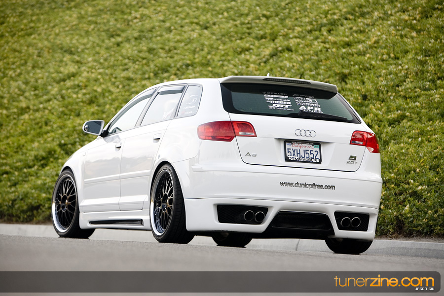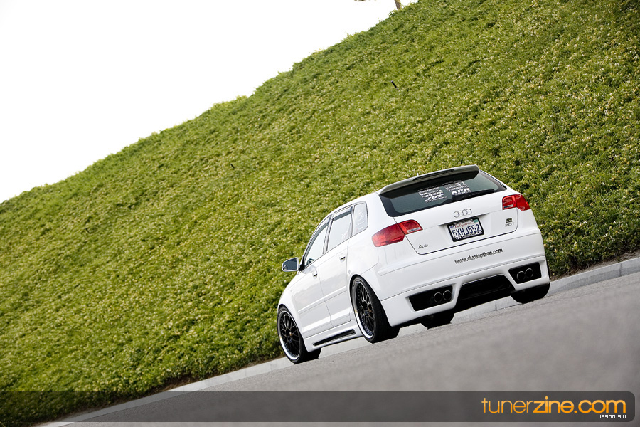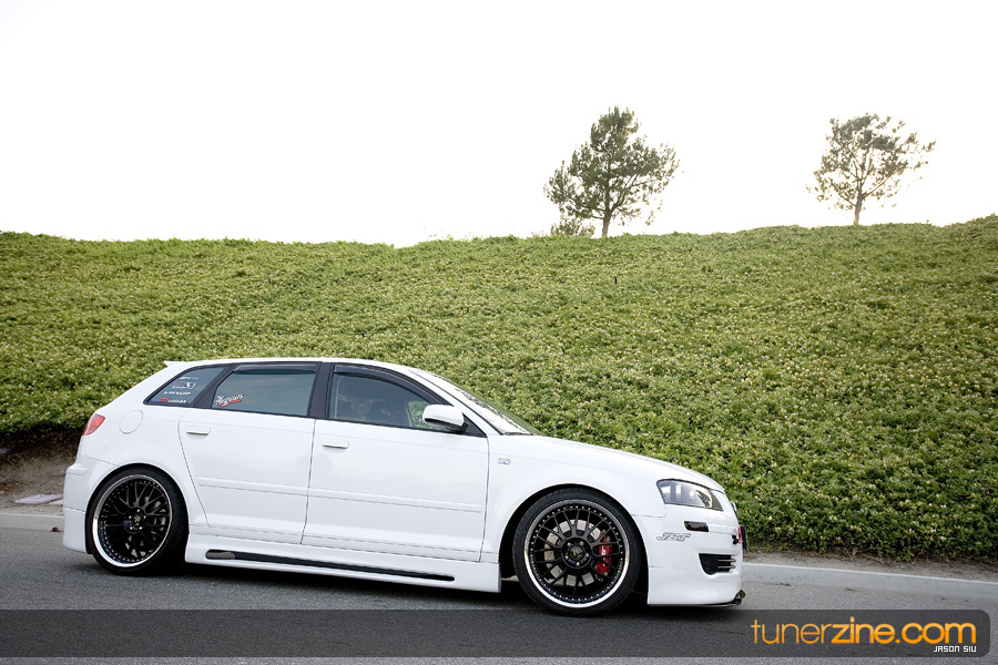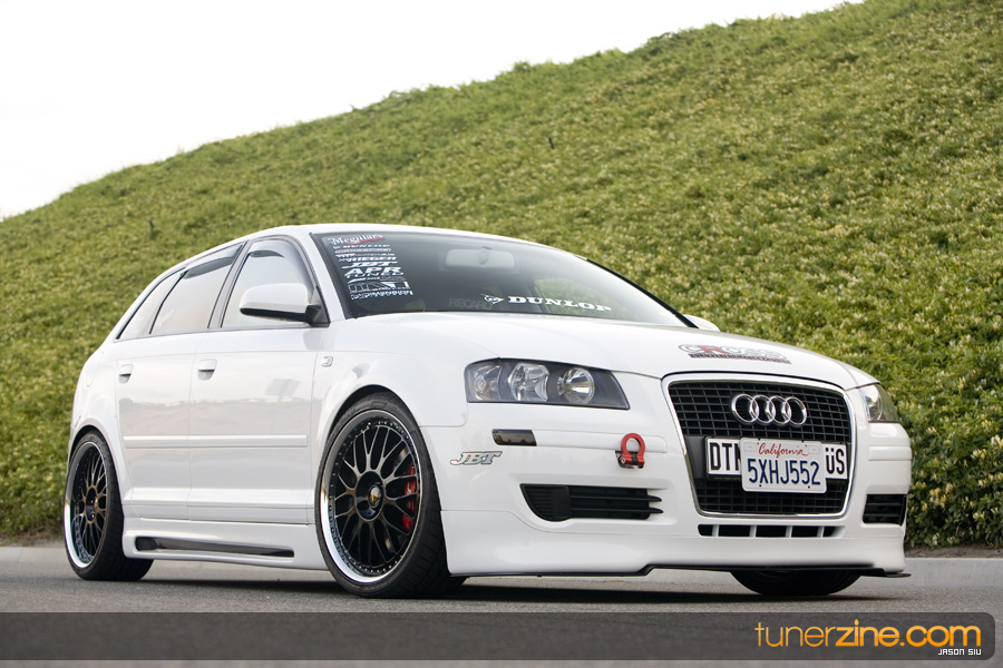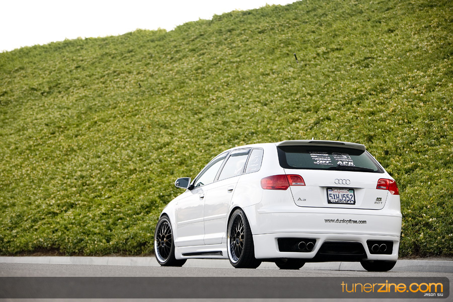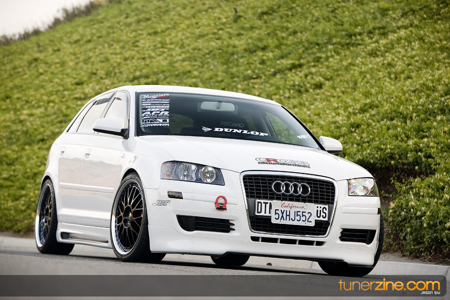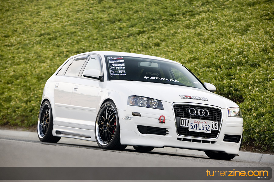 The Audi moniker has formed its own loyal following in the aftermarket throughout the years. Often grouped with the VW enthusiasts, Audi owners truly have their own style. Nathan Leon in Southern California is one of these Audi owners. Having previously owned a naturally aspirated Eclipse that received its fair share of modifications, Leon felt it was time to get into a new and up-to-date car.that was turbocharged. His search ended with Audi’s newest entry into the playing field: the A3. Equipped from the factory with a 2.0L 6-speed turbocharged engine, the A3 was exactly what Leon needed. And in just three months time, with the help of his sponsors, Leon was able to complete his conversion of mundane commuter car to feature worthy show winner.