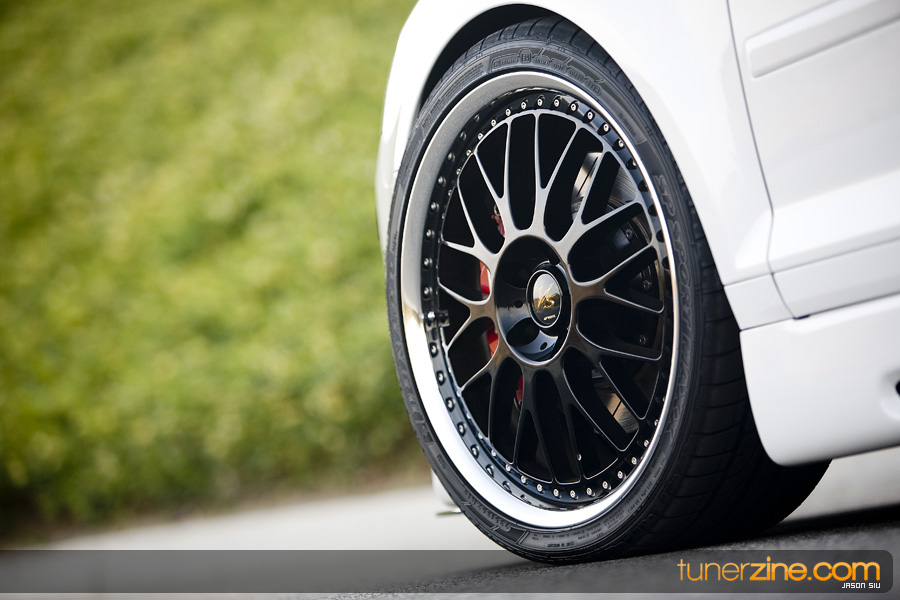 Completing the look on the outside is a staggered set of 19-inch Work VS-XX forged wheels. Leon opted to have his centers painted in a glossy black finish to accent the white exterior of the vehicle. Width-wise, Leon went with 8.5’s in the front and 9.5’s in the rear. Dunlop Sport Maxx tires can be seen on all four wheels, cushioning it from the pavement and providing Leon with plenty of grip and performance when its demanded. Speaking of grip and performance on demand, this A3 has a whole new stance thanks to a set of Cross coilovers. For those that have been living under a rock the last couple of years, the Cross brand name is a division of famed suspension manufacturer, JIC Magic. Cross are their European line of products and its quality is undeniable. The brakes have also received a fair upgrade with a 4-piston big brake kit from JBT and 2-piece slotted rotors.