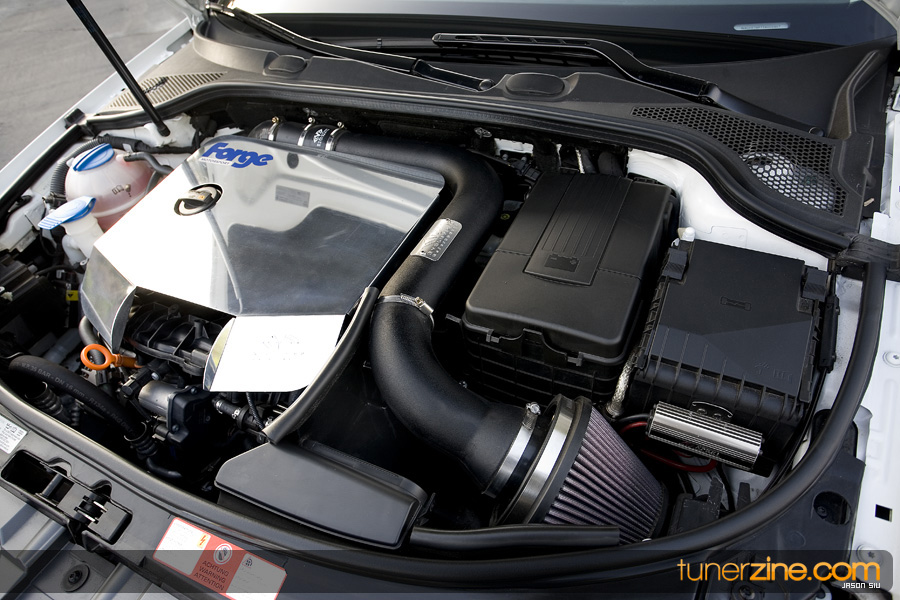 Now that Leon had his hands on a turbocharged vehicle from the factory, it was almost a given that engine upgrades were to be done. The bolt ons began with an EvoMS intake system, APR 3-inch downpipe and Neuspeed 3-inch Quad exhaust system. For the situations when Leon does let off the gas pedal and excess pressure needs to be purged from the system, a ForgeMS Turbo blow off valve can be heard piercing the air. For décor, EvoMS provided a polished turbo heat shield and engine cover. Now for the real power addition, Leon had his ECU sent out to APR for their stage 3 upgrade. Plenty of boost and a different fuel mixture now brings this A3 to a whole new level of power.