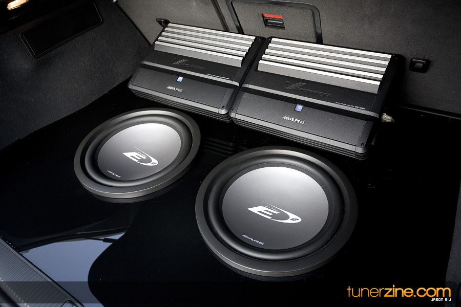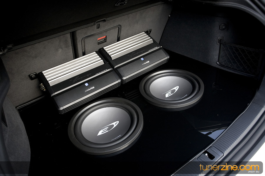 No car is complete without its upgrades in the electronics department. A full custom enclosure in the rear has been fabricated with plexi-glass and painted black. It houses a pair of Alpine Type E 12-inch subwoofers. Powering the new subwoofers and the Alpine 2-way and 4-way speakers are Alpine’s 4-channel and 2-channel amplifier. The 4-channel provides 450 watts of power while the 2-channel provides 650 watts of power. Let us tell you that this Audi sounds sweet inside and out.