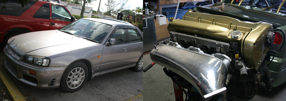 What you see here before you is one of the most rare pieces of machinery that we have ever come across in our industry. The Tjin Edition 1998 Nissan R34 Skyline sedan debuted at the 2005 SEMA show and since then it has taken our industry by storm. After seeing the car debut at the SEMA show and on ESPN 2 Import Racers TV show, and then at numerous shows like Import Showoff, Hot Import Nights, Night Shift, and DUB we wanted to find out just what went into building this one of a kind ride. We decided to contact Neil Tjin, owner of this Skyline and president of Tjin Edition and asked him if he would be kind enough to share with us his behind the scene photos and the 411 on what went into building his R34 sedan.